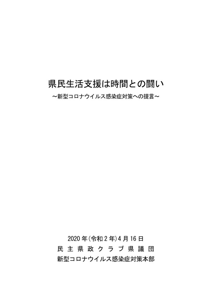 民主県政クラブ県議団の新型コロナウイルス感染症対策への提言