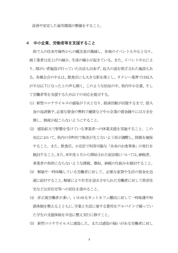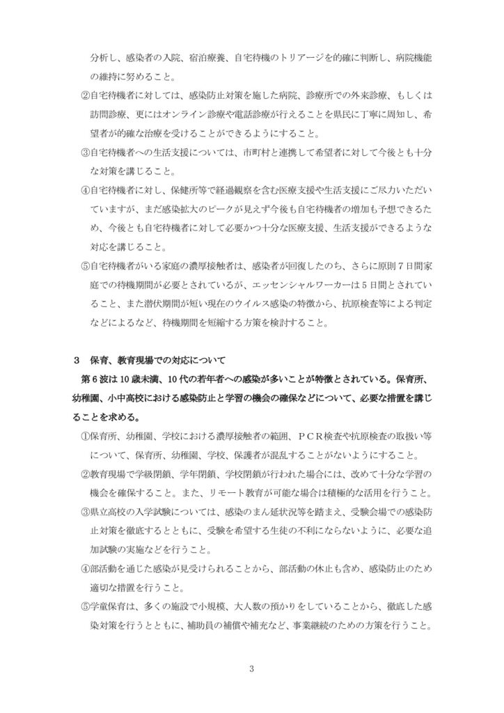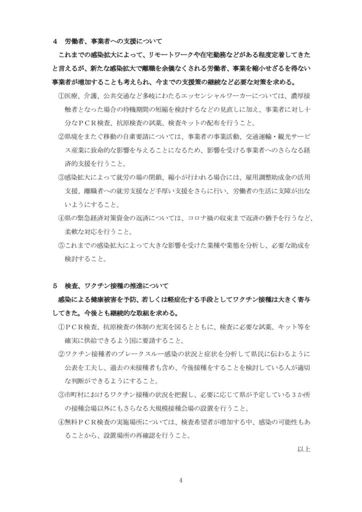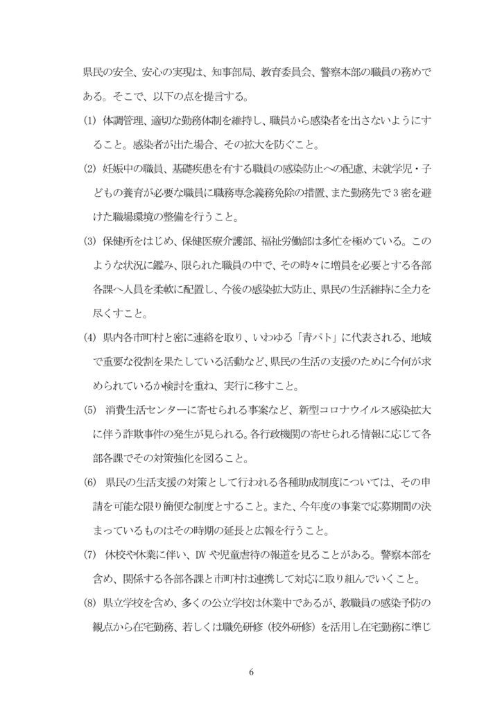 我が会派全ての議員は、知事を先頭とする県執行部と共に、感染拡大の抑制と、県民生活の安定に邁進してまいります。