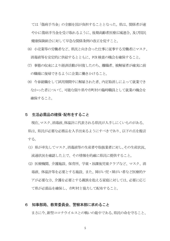 なお、今後も新型コロナウイルス感染症に関する生活面、仕事面でお困りのことや県に求める施策などがありましたら、お近くの民主県政クラブ県議団の県議会議員事務所の方にご連絡ください。
